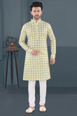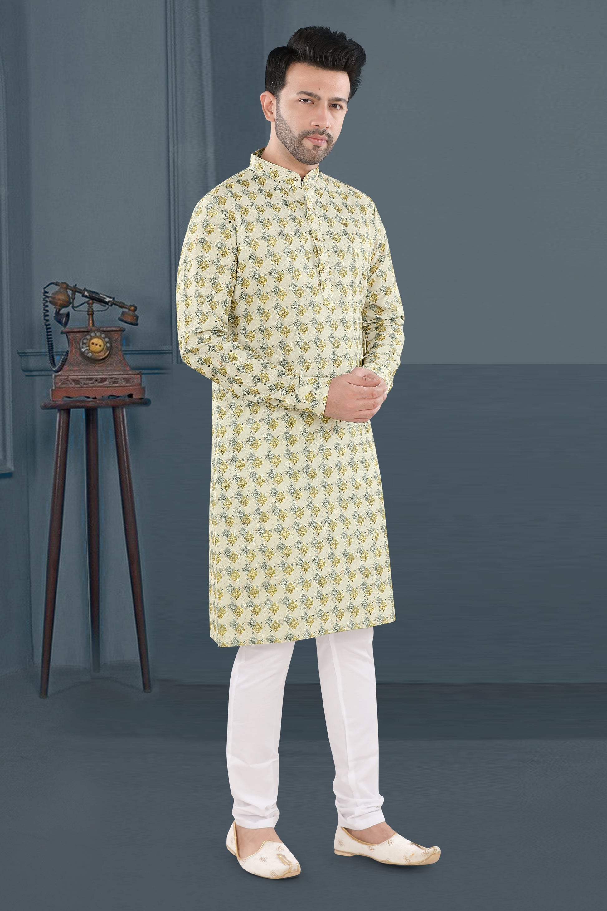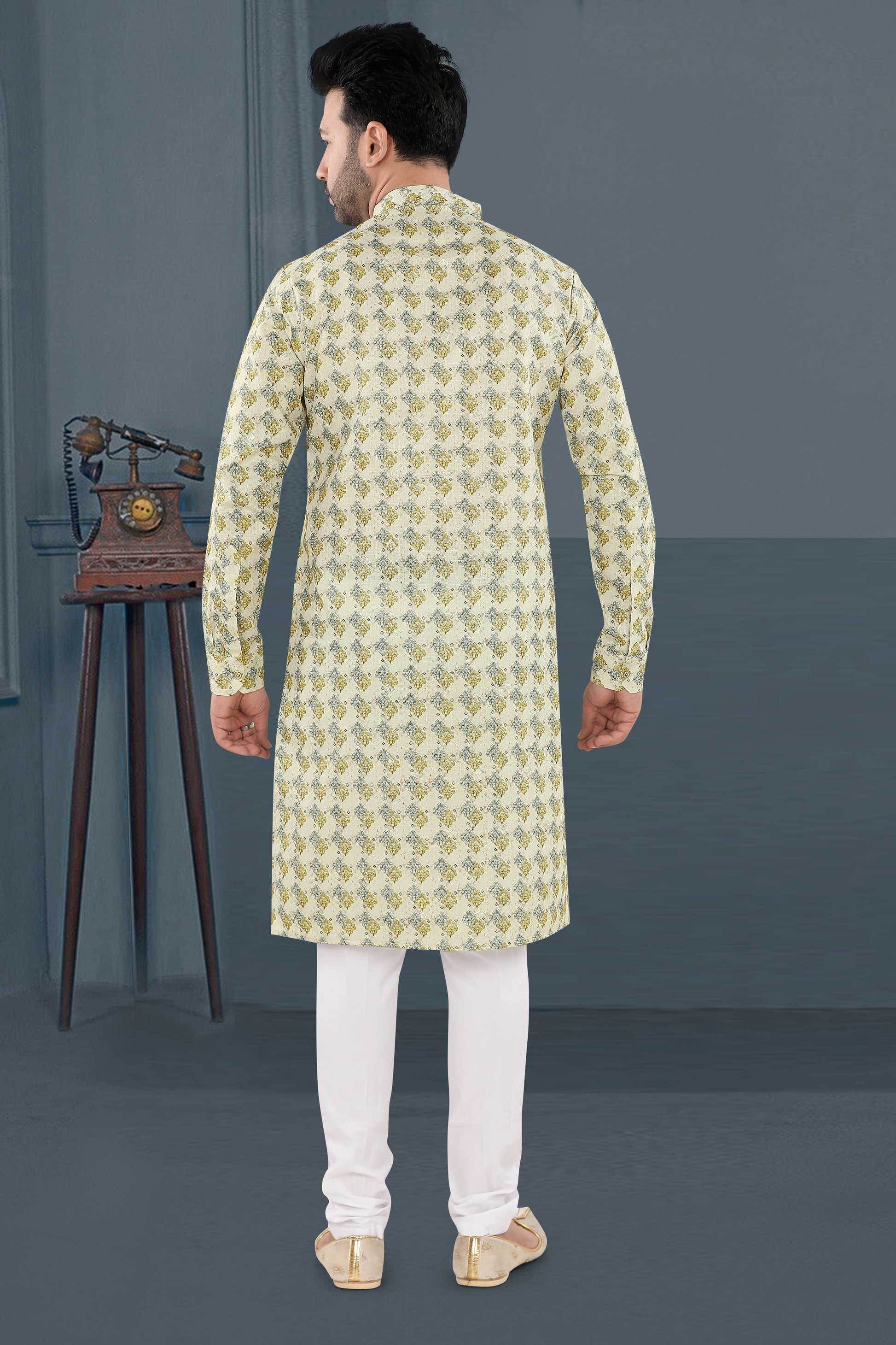 Ivory Yellow-Green Printed Festive Kurta Set(6426)