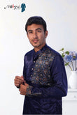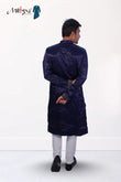 Channel timeless elegance with our Midnight Mashroo Geometric Embroidered Kurta, crafted for men who value regal style and modern sophistication.